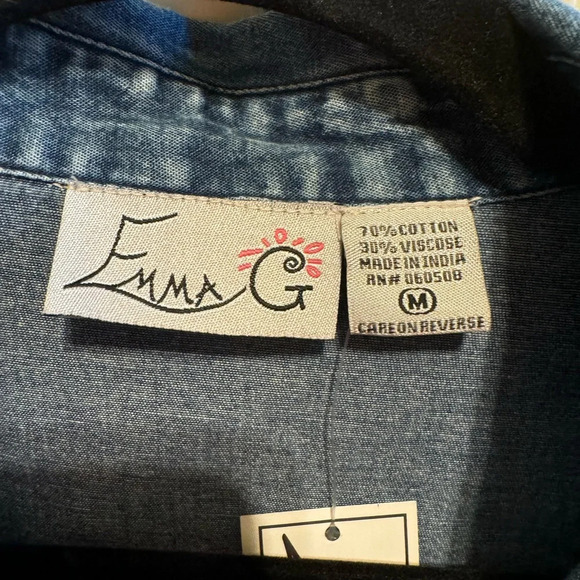 Emma G Denim Front Print Back Button Down Jean Dress Chest Pockets Sz M