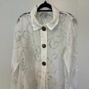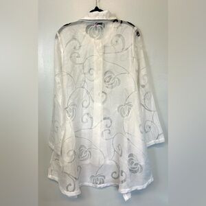 Emma G Lagenlook Duster Sz Medium White Sheer Floral Linen Topper Coverup Tunic