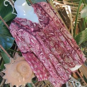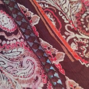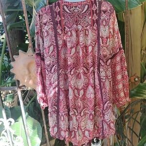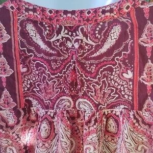 Elegant paisley print women's top in rich red and pink hues. Perfect for adding a touch of sophistication to your wardrobe.