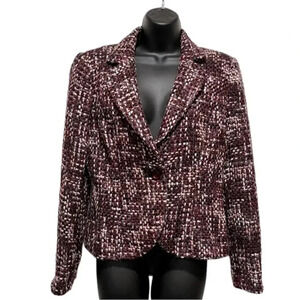 Emma James Basketweave Tweed One Button Blazer Wine Red and Black Womens 6