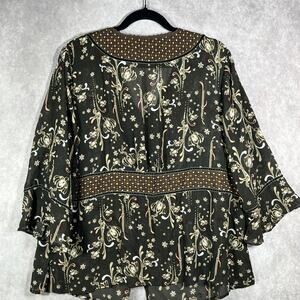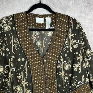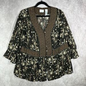 Emma James Blouse Womens 18W Brown Floral Button Front Boho Peasant Fairy Lightweight