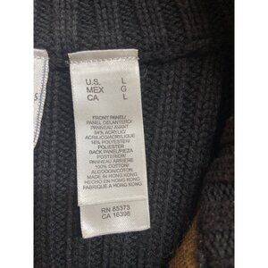 Cozy and chic, this Emma James by Liz Claiborne faux fur vest features a plush dark brown and black front with a chunky ribbed knit collar and full zip closure. Size Large, made in Hong Kong. Soft inner lining and cotton back panel for added comfort. A perfect layering piece for fall/winter or Y2K revival looks. RN 85373.