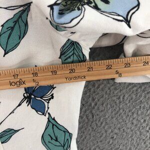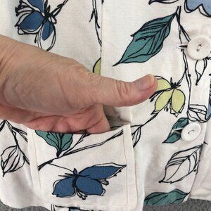 Emma James Jacket Womens 14 Blue Floral Linen Blend Button Collared 3/4 Sleeves