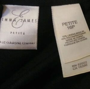 Emma James Linen Black Skirt. 55% linen, 45% rayon. Size 16P. Back zipper and button closure.