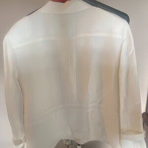 This Emma James Linen & Rayon Jacket is off white in color and is in size 16. The jacket comes with amazing details on the front and back and on the end of the sleeves. It will dress up any pair of pants or skirt very elegantly. The jacket was worn only once and its practically "like new" condition.