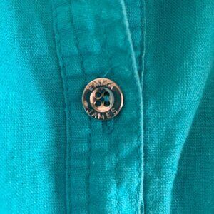 Emma James Linen-Cotton Blend Button Front Roll Tab Shirt M Turquoise 128E