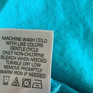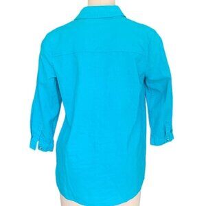 Emma James Linen-Cotton Blend Button Front Roll Tab Shirt M Turquoise 128E