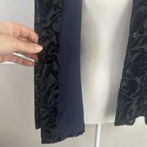 Emma James Navy Burnout Velvet Sheer Blouse 14 Whimsigoth Witchy Romantic