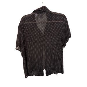 Emma James Shirt Size 18 Black Sheer Lined Short Sleeve Knit Top Polka Dot Retro