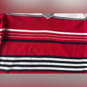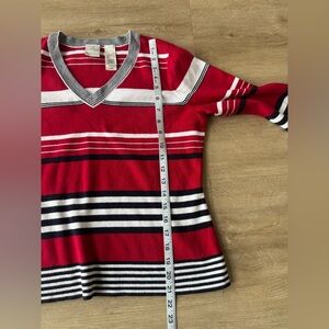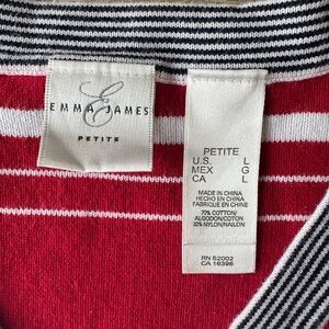 Emma James Sweater Large Petite Striped V Neck 3/4 Sleeve Knit Top Cotton