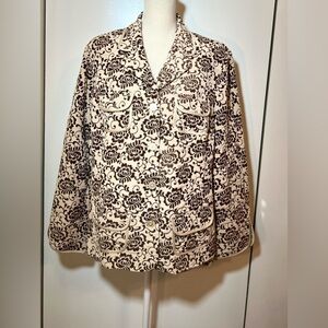Emma James Woman Blazer Women’s size 22W Tan And Brown Silky Trim in like new used condition From a smoke and pet free home