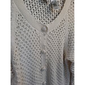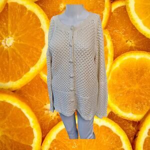 Emma James Woman’s Beige Long Sleeve Button Front Crochet Knit Cardigan Size XL