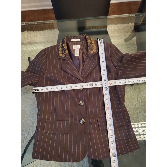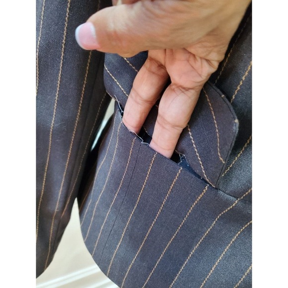 Emma James Women's Brown Striped Single Breasted Three Button Blazer Jacket 14.