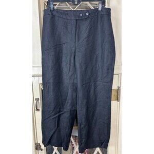 Emma James Womens Size 12 Black Linen Blend Wide Straight Leg Ankle Pants N4