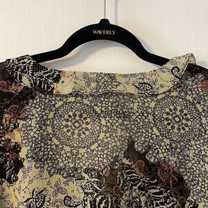Emma James ruffle earth tone print button front bracelet sleeve blouse 12 EUC