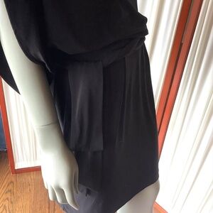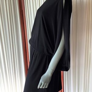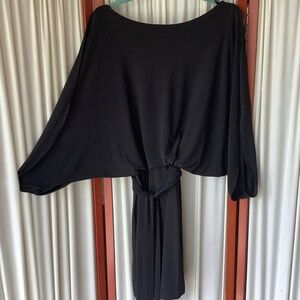 Emma & Michele Black Dress Blouson Tie Waist Bat Wing Cold Shoulder Large
