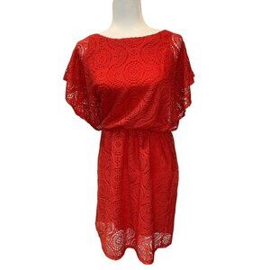 Emma & Michele Coral Red Crocheted Flutter Sleeve Dress with Slip Size 6