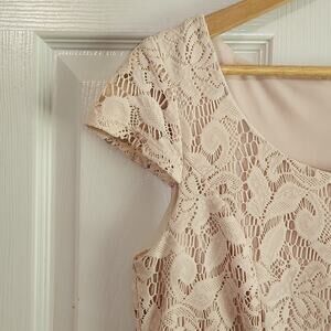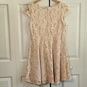 Emma & Michele Cream/Light Taupe Lace Overlay Cap Sleeve Dress Size 8 Skater