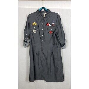 Emma & Michele Dress Womens 16 Gray Button Down Patch Shirt Dress Long Sleeve