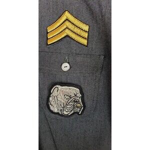 Condition: Good pre-owned condition. Light overall wear, light fading in some patches. No major stains or tears. Note: the Bulldog and double heart patch slightly peeled off - need to reinforce if purchase. Belt loops but item does NOT include any belt.