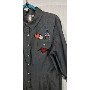 Emma & Michele Dress 16 Dark Gray Button Front Artsy Patch Twee Back To School