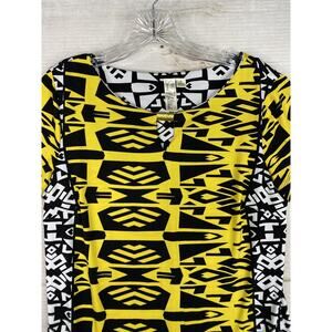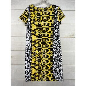 Emma & Michele Dress Womens M Yellow Black Short Sleeve Stretch Knit Keyhole