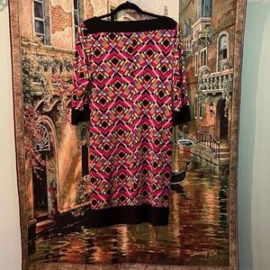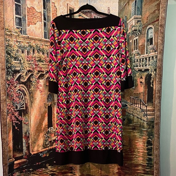 Vibrant geometric pattern. Features pink and black colors. Perfect for a bold statement.