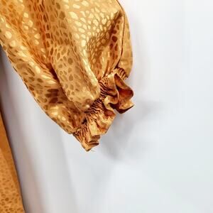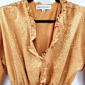 Emma & Michele Gold Long Sleeve Ruffle Leopard Animal Print Shift Dress Size M