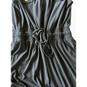 Emma & Michele Jumpsuit Women's Large Navy W/Gold Wide Leg Pant Sleeveless Tie