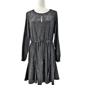 Emma & Michele Long Sleeve Tree Branch Design Black Midi Dress Size Medium