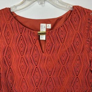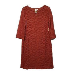 Emma & Michele NWT Orange Lined All Over Mesh Quarter Sleeve Dress Size M Eyelet