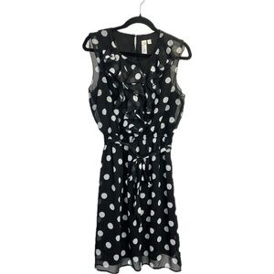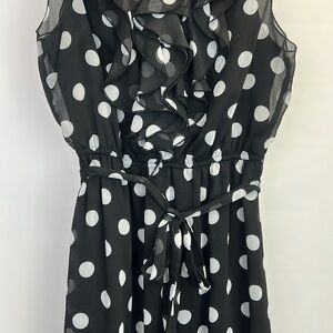 Emma & Michele Polka Dot Ruffled Front Women’s Dress Belted Waist Size 12