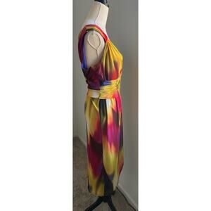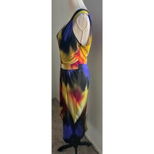 Emma & Michele Sunset Multicolor Faux Wrap V-Neck Sleeveless MIDI Dress Size XL