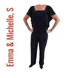 Emma & Michele Womens Solid Black Pants Jumpsuit Flutter Sleeves Size Small. Condition is Pre-owned. Shipped with USPS Ground Advantage. So comfy.