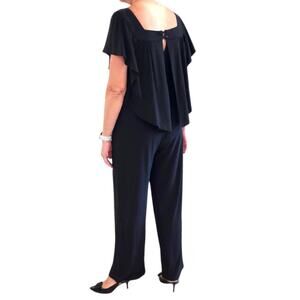 Emma & Michele Womens Solid Black Pants Jumpsuit Flutter Sleeves, Small