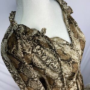 Emma & Michele NWT gorgeous boho snakeskin print dress. Long sleeves with a tie at waist, v-neck and a ruffled collar.