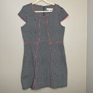 Emma & Michelle Aline Dress Woman’s Size 16 Black White Geometric Coral Trim