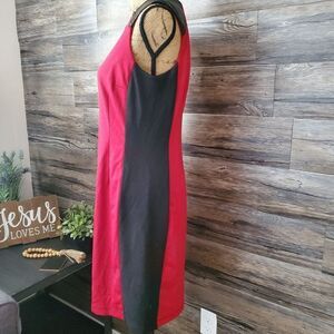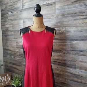 Beautiful Emma & Michelle Crepe Solid Red, Leather Shoulder Sheath Shift Knee Length Dress. Women's Size 10