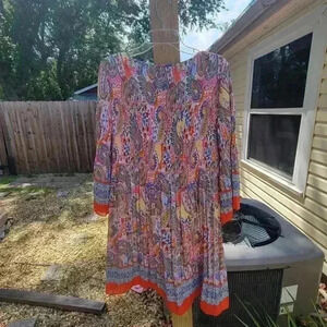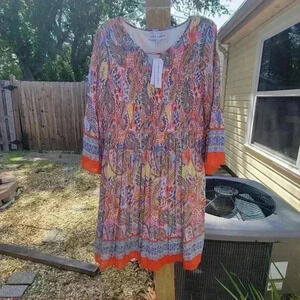 Emma & Michelle Plus Size 2X Bell Sleeve Keyhole Printed Dress Retail $84.00
