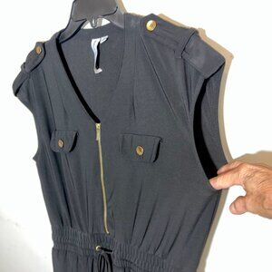 Emma & Michelle Romper Black Zip Front Gold Tie Up Waist Sleeveless SZ M
