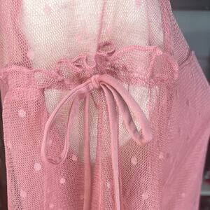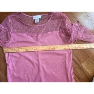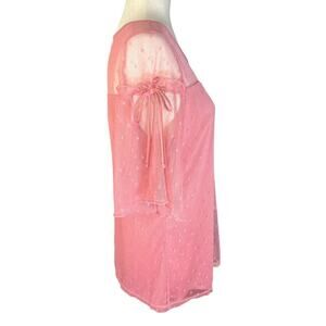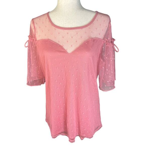 Emma & Olive Swiss Dot Mesh Overlay Top Sweetheart Neck Bell Sleeve Pink size XL