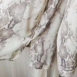 Emma & Olivia Cream/Gray Snakeprint Split Neck Top, L