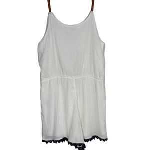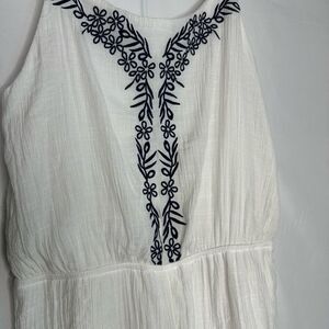 Emma Outfitters White and Navy Embroidered Romper Size M