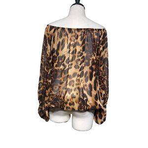 Emma Rose Sheer Leopard Print Off the Shoulder Blouson Top Small