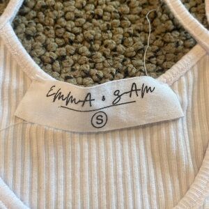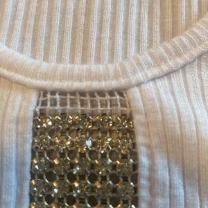Emma & Sam White & Rhinestone Ribbed Cropped Tank Top Size Small in EUC