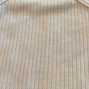 Ribbed tank top with rhinestones up the center. Not sure if at the top of strip of rhinestones if there are two rows missing or was meant to be that way. Cute either way.