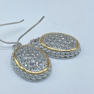 Emma Skye Silver Tone Pave Crystal Drop Earrings Gold Tone Accent Oval Shaped