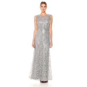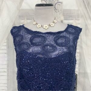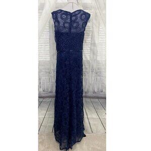 Emma Street Size 12 Blue Corded Lace Sequins Gown Dress Full Length Mesh Overlay