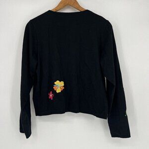 Emma Tricot Cardigan Embroidered Tropical Flowers Black Women’s Size Medium
