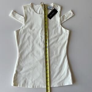 Emma Wallace Jessica Sleeveless Top in White with Back Gold Zip Panel Size US4